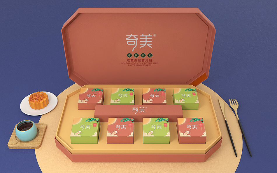 山東威海奇美食品有限公司是一家專業(yè)從事月餅研發(fā)和銷售的食品公司,是也設(shè)計受奇美公司委托,為其設(shè)計新款月餅禮盒包裝。